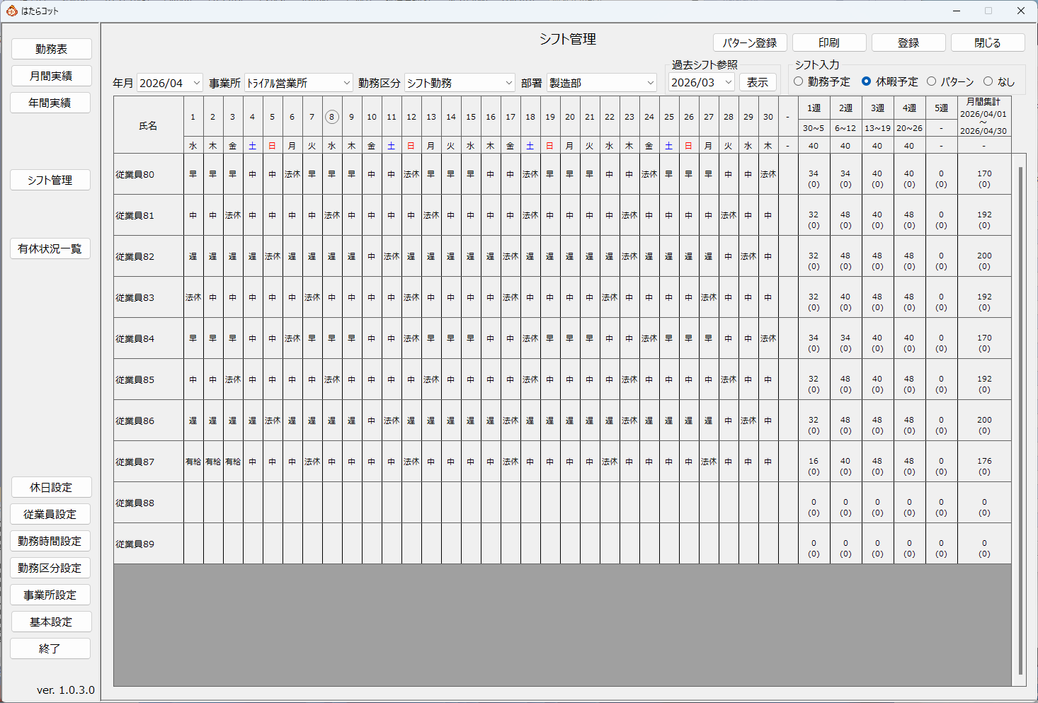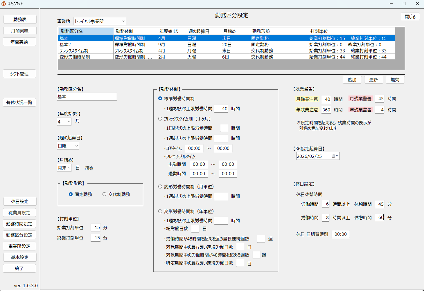 導入後のカスタマイズが前提の設計。変形労働時間制、フレックス、裁量労働制など、あらゆる勤務形態に対応。